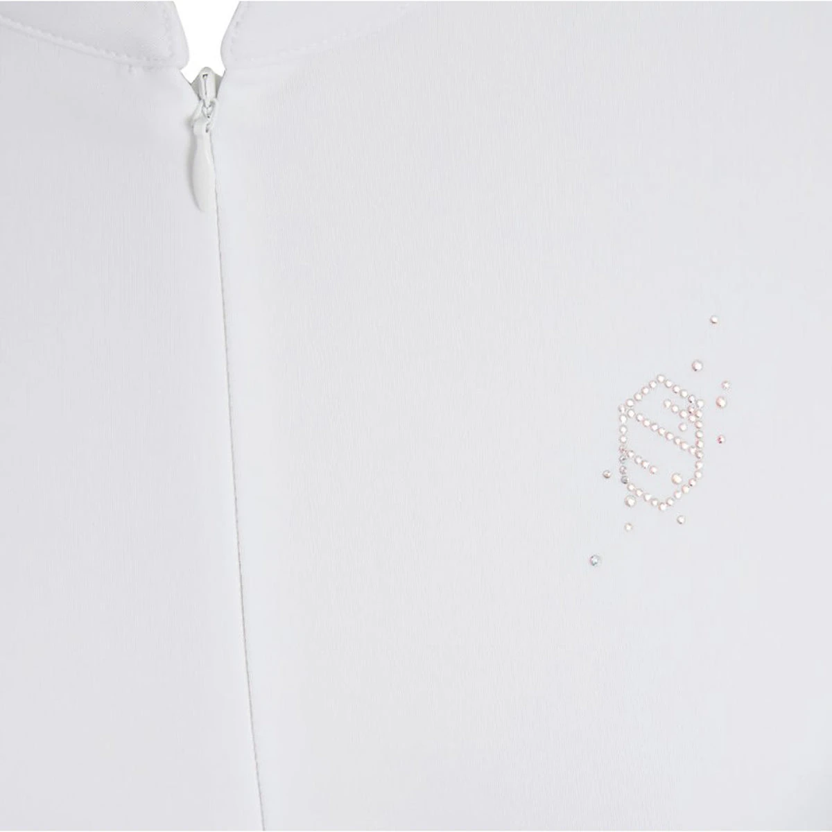 The Louison short sleeve competition shirt has a stunning custom Samshield perforation across the reverse and arms of the garment, creating an elegant ‘leaves in the wind’ effect. The dipped collar at the front, hidden zipper and Swarovski Samshield blazon on the chest add to the feminine feel. The Italian material is a high stretch, breathable, technological fabric that wicks away sweat to keep the rider dry and comfortable. UV protection maintains the quality of the fabric and protects the riders skin in the summer months. Easy care, machine washable at 30’C and made in an eco conscientious manner.