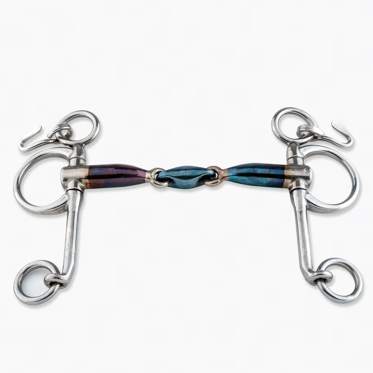 The pelham is often used with strong horses. Because of the leverage effect created by the sides, the bit is fairly sharp. By using this bit it’s easier to ride a horse rounder in the neck. The longer the sides, the sharper it is.